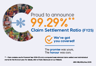 ** - Claim statistics are for Financial Year 2024-25 and is computed basis individual claims settled over total individual claims for the financial year. For details, refer to Public Disclosures in our Website.